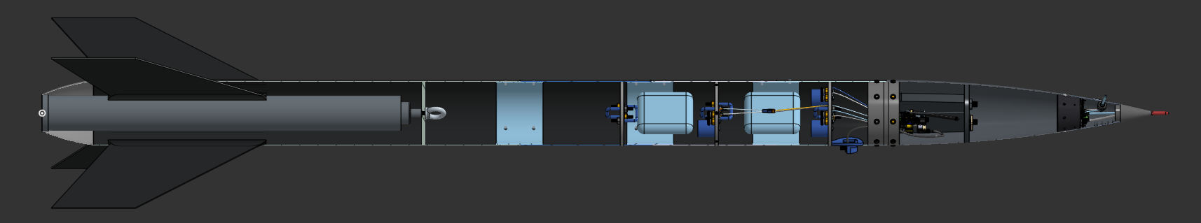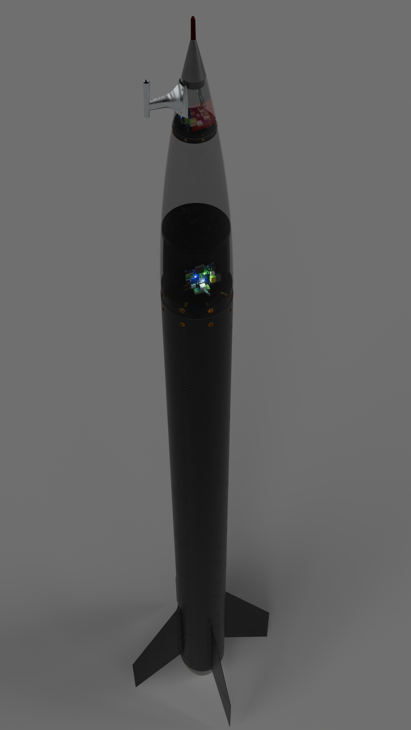 Our leading and most advanced project is the Lynxrocket V5. This project is designed for the EUROC competition and mission purposes. The Lynxrocket V5 is a high-power rocket aimed at reaching approximately 3000 m and Mach 1.2. These conditions allow us to test several onboard systems. The main system under evaluation is a pitot-static tube paired with an Air Data Computer (ADC), both designed, tested and built by Lynxspace. Another system integrated with the ADC is the TAT probe, rarely seen on high-power rockets. This probe increases the precision of Mach number calculations and improves the accuracy of other air-data and environmental measurements.